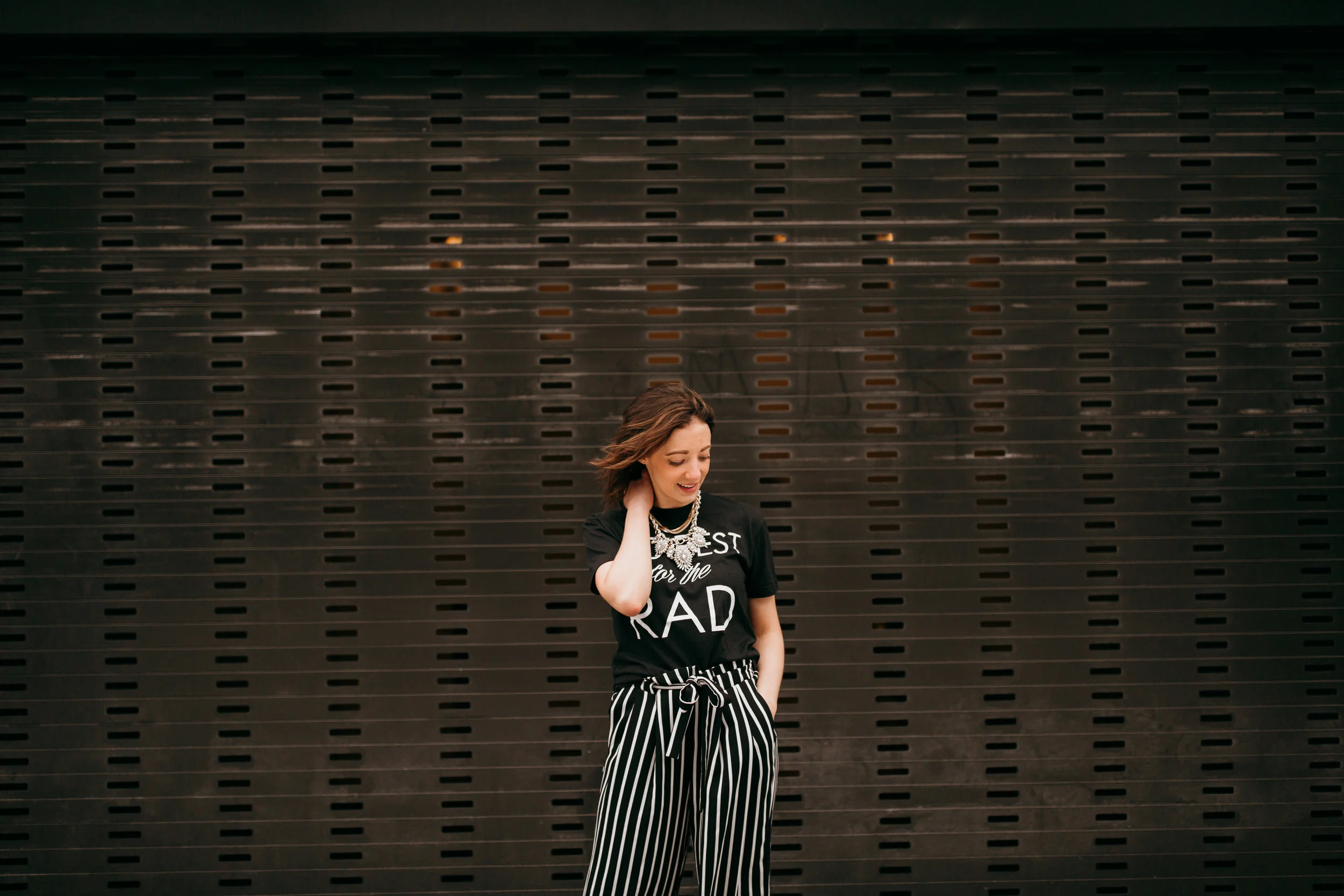 So, the question is, how does one go about styling a bold pattern like stripes? Here's an outfit breakdown of one of my favorite ways to style my striped pants in this look.