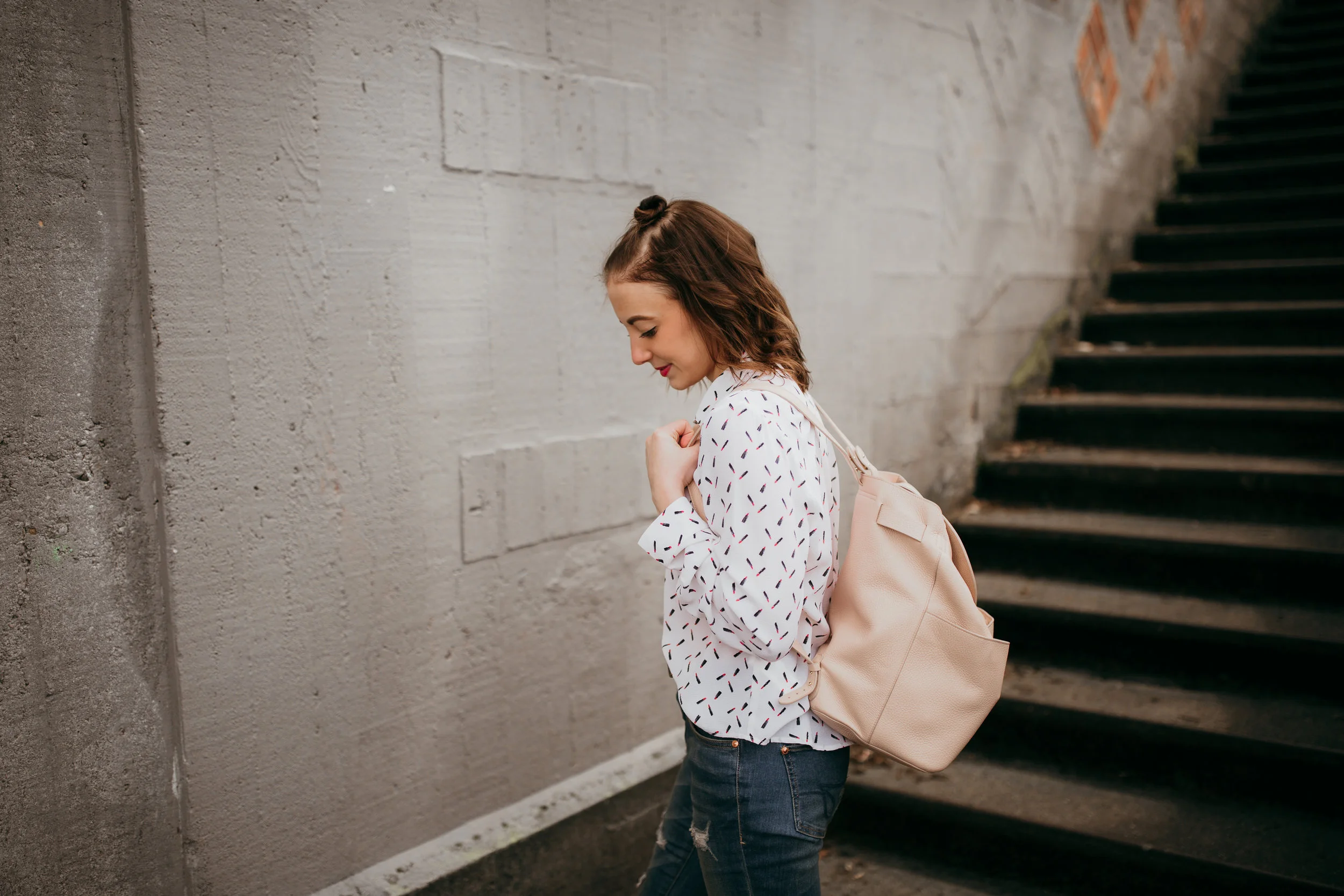 - The work bag. I’ve recently opted for using a backpack as my workday/weekday bag and I can honestly say it’s the best decision I’ve ever made! Sure, I love my handbags as much as the next person but I haul A LOT of stuff in my bags (just ask my boyfriend Tristan!) It wears me out to carry a hefty bag on one shoulder around all day – it’s even resulted in horrible back and neck pain. When I received my Cuyana blush backpack I decided to give it a try. I’ve been so impressed with how much it’s relieved my back pain since it distributes the weight evenly when worn. It also fits everything I need perfectly! Backpacks make for the best work bags all while stylishly fitting your haul.